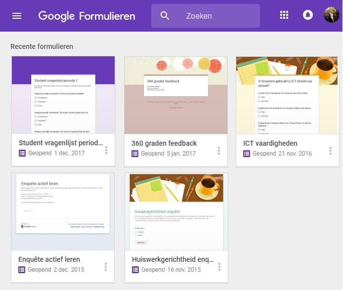 Een overzicht van Google Forms vragenlijsten van de afgelopen twee jaar ->
