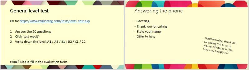 Het grote voordeel aan internet is dat je er oneindig veel kunt vinden. Zo ook ideeën voor lessen. Een website die ik veel gebruik is http://busyteacher.org/ deze website heeft allerlei lesmaterialen van mensen over de hele wereld die lessen Engels verzorgen. Over vrijwel ieder onderwerp is hier iets te vinden. Ik pas de materialen wel heel vaak nog aan naar mijn doelgroep maar het idee komt vaak vanaf deze website. Een andere website die ik gebruik is http://isabelperez.com/songs.htm deze website biedt activiteiten aan met liedjes. Omdat dit vaak nummers zijn die erg bekend zijn bij de studenten, is het leuk om hier wat mee te doen. Zo heb ik laatst met voorbeelden vanaf deze website, een liedje gekozen en opdrachten bij gemaakt over wereldproblemen. Het lied koos ik zelf omdat ik het mooi vond en er veel rake dingen werden gezegd, maar de vragen heb ik gebasseerd op andere liedjes die op deze website stonden met soort gelijke onderwerpen.